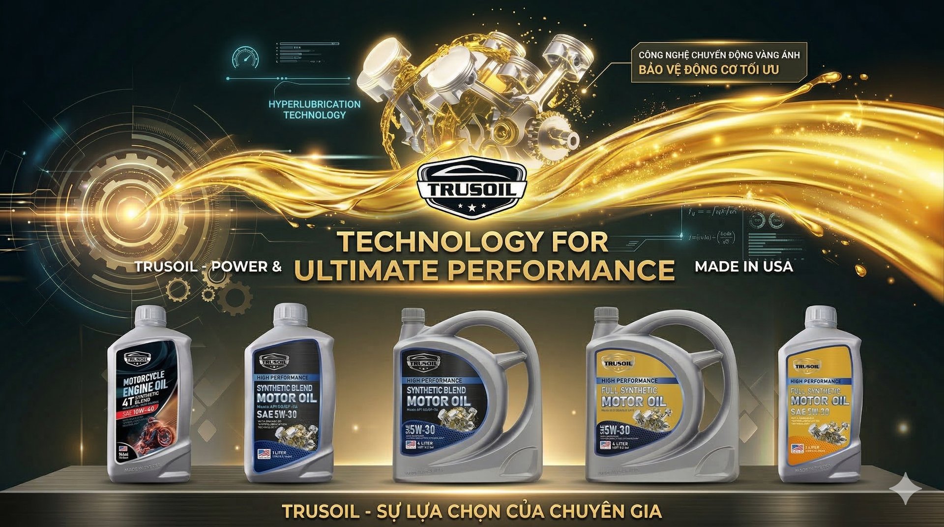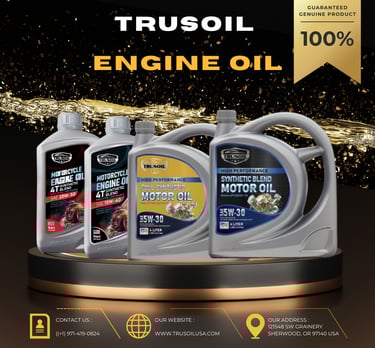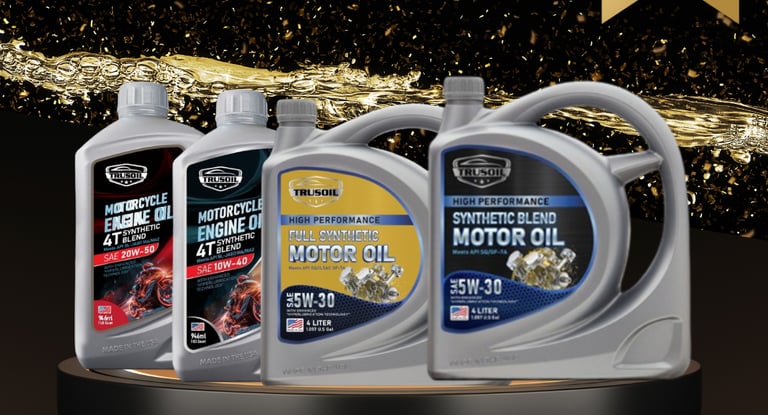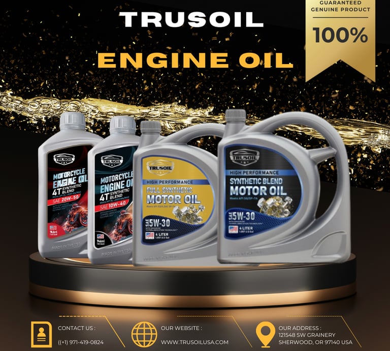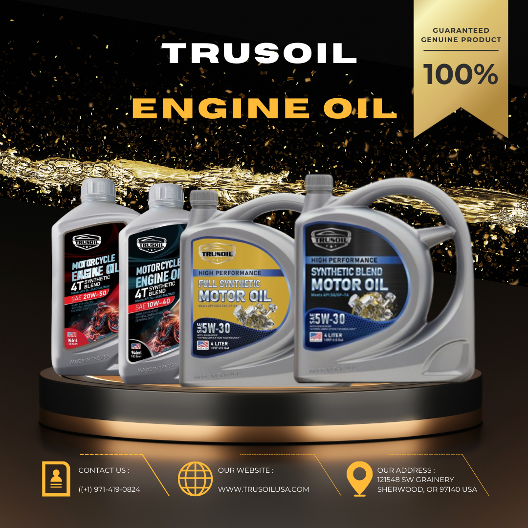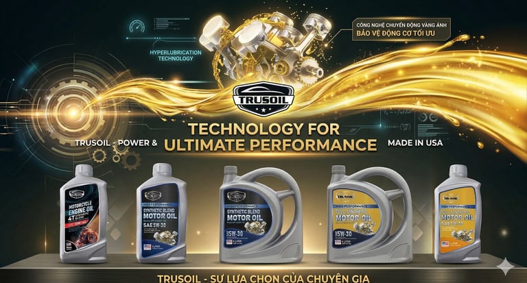 Dầu nhớt động cơ ô tô, xe máy TRUSOIL cung cấp nhiều loại sản phẩm đạt chuẩn Mỹ: dầu động cơ, dầu hộp số, dầu truyền động, dầu phanh và mỡ bôi trơn, đáp ứng các tiêu chuẩn khắt khe từ API, SAE, JASO...