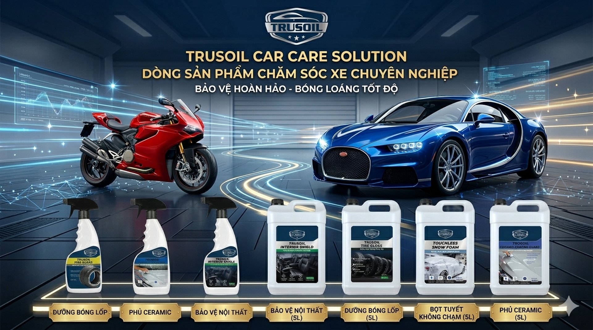 TRUSOIL – Sản phẩm chăm sóc xe, cung cấp giải pháp chăm sóc xe của bạn chuyên nghiệp là thương hiệu chuyên về sản phẩm chăm sóc và bảo trì xe, từ dung dịch rửa xe, tẩy rửa nội thất, phủ bóng đến bảo vệ sơn xe,... Các sản phẩm chăm sóc xe TRUSOIL không chỉ giúp làm sạch hiệu quả mà còn đảm bảo an toàn cho bề mặt xe, giữ cho phương tiện luôn sáng bóng và bền đẹp theo thời gian.